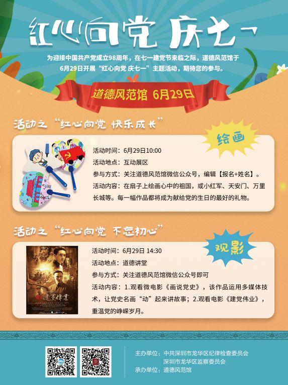 道德风范馆于6月29日开展“红心向党 庆七一”主题活动,期待您的参与。