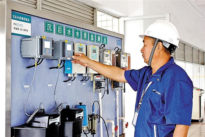 站在原水水质监测点前,有着32年从业经验的罗海波看着浊度计上显示的数字说,“近期因为下雨,原水浊度偏高,净水处理过程需要多加注意。”罗海波是红木山水厂运行班班长,他说,调节原水pH值、投加絮凝剂、混凝沉淀、过滤、消毒杀菌、送水,从原水到出厂水,每个工艺环节都要严把“安全关”。