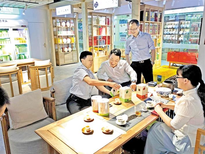 自茶室成立后,大浪商会定期在茶室举行活动,商会成员都喜欢到茶室以茶会友,洽谈生意。如今,茶室一方面和区对口办一起,组织紫金优质茶叶品牌入驻展销;一方面按照“招商洽谈+茶叶展销”的产业共建新阵地要求,邀请具有投资意愿的深圳企业家前来品茗,推介紫金投资环境,以茶会商。