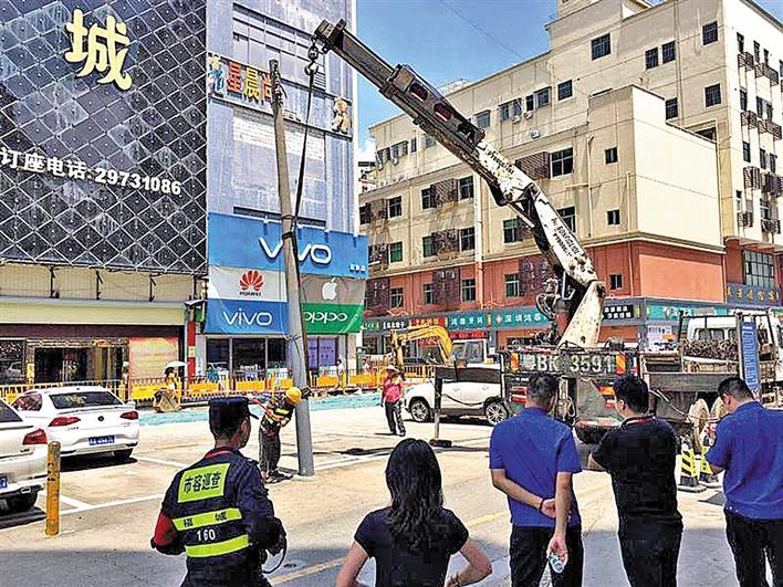 本报讯(龙华新闻记者 黄晓华 通讯员 孙灵芝/文 记者 陈建华/图)随着城市的不断发展,原先担负重要功能的部分电线杆正在逐步丧失其作用,一些废弃电线杆还成为“牛皮癣”的聚集地,陈旧破损、摇摇欲坠,不仅阻碍道路通畅,影响城市形象,还徒增安全隐患。为全力清除辖区安全隐患,做好汛期隐患防控,福城街道党工委要求街道各部门不坐不等不靠,主动出击,查摆问题,消除隐患。特别是街道执法队联合各相关社区开展“拔刺清障”行动,还路于民。