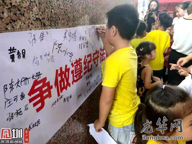 50多名参与者在“争做遵纪守法好公民,共建法治福城”的横幅上签名,倡导更多人加入到暑假安全法治宣传当中,共同遵守这份约定。本次活动,共发放水彩笔、笔盒、雨伞等宣传品300余份,受教育260余人次,收到了良好的宣传效果。