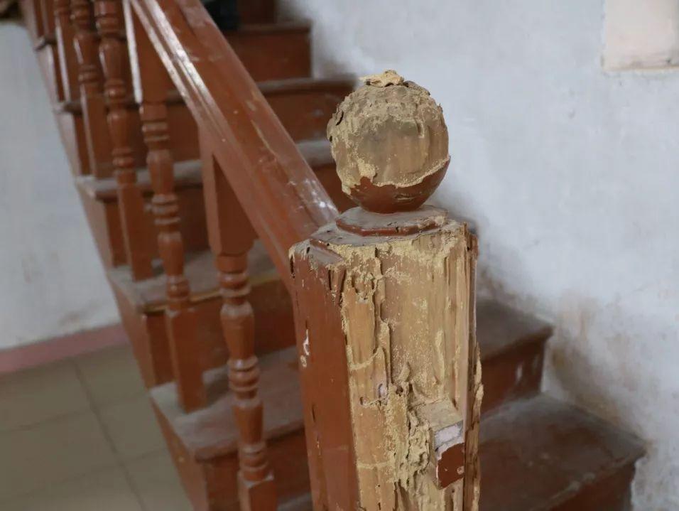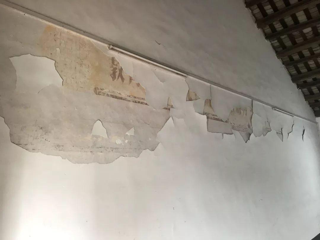 代表一行来到学校古楼群参观门楼、教学楼主楼和副楼,了解到因长年被白蚁蛀蚀,门楼及教学楼主楼屋面木基层糟朽严重,教学楼主楼在历次维修时更换的桁条桁径偏小,导致各开间屋面跨中下沉,瓦件破碎。