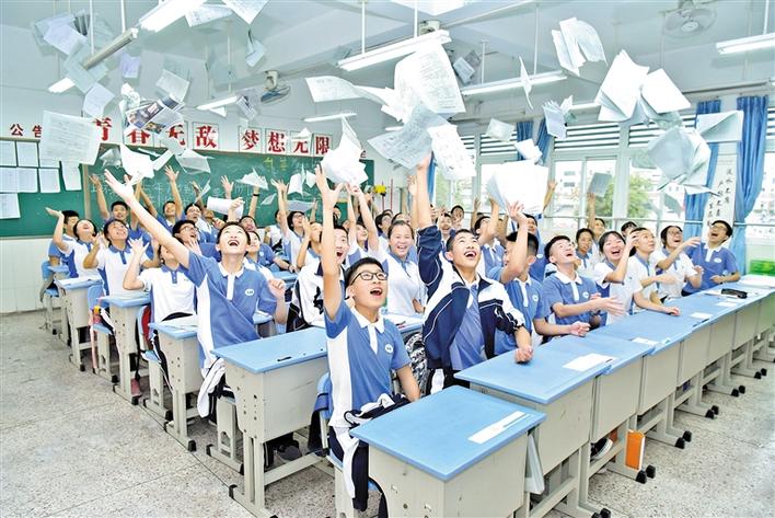 观澜二中初三学子通过抛试卷的方式,花样庆祝完成初中学业。