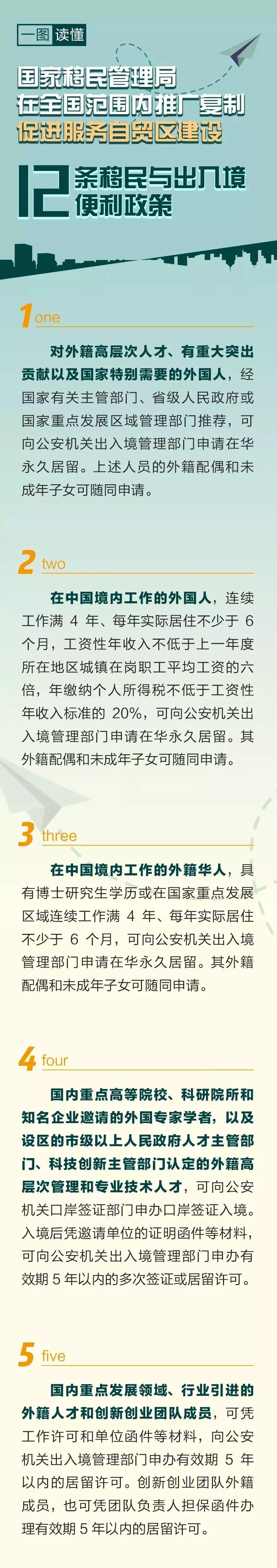 据公安部消息,自今年8月1日起,将在全国范围内推广复制促进服务自贸区建设12条移民与出入境便利政策。