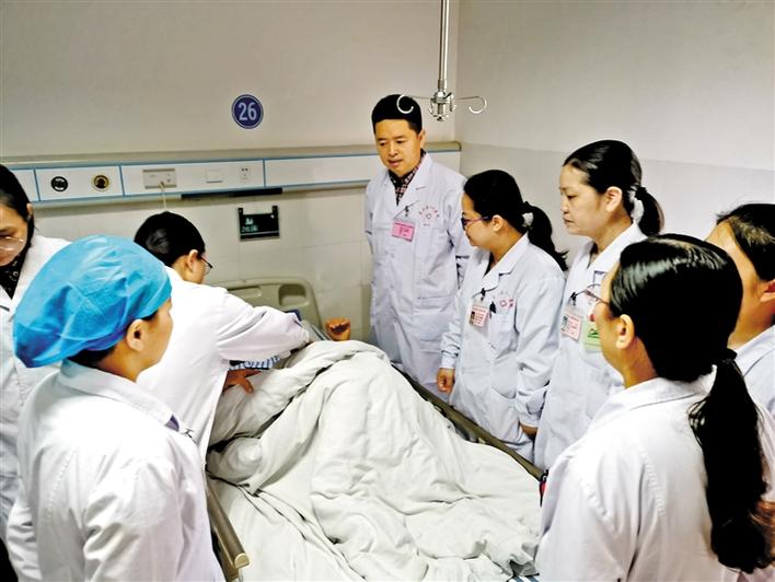 冷有旭(右四)坚持每天査房,给病人提供最佳治疗方案。