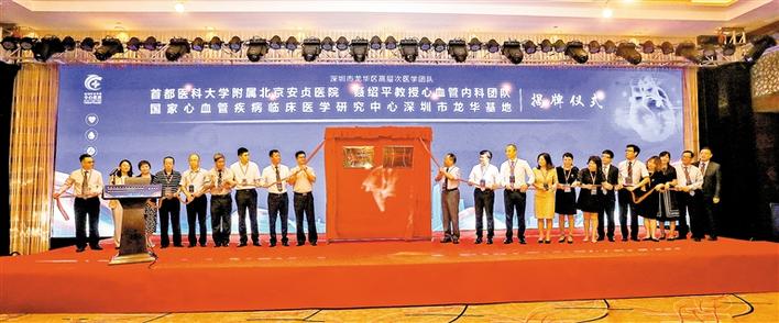 龙华区又引入一个高层次医学团队!7月27日,首都医科大学附属北京安贞医院聂绍平教授心血管内科团队暨国家心血管疾病临床医学研究中心深圳市龙华基地揭牌仪式暨“冠心病交叉高峰论坛及心衰论坛”在格兰云天会议厅举行,双方将在临床、教学、科研、人才培养方面开展全方位合作,依托安贞医院雄厚学科实力,力争在较短时期内促进龙华区中心医院心血管专科达到市重点学科水平。