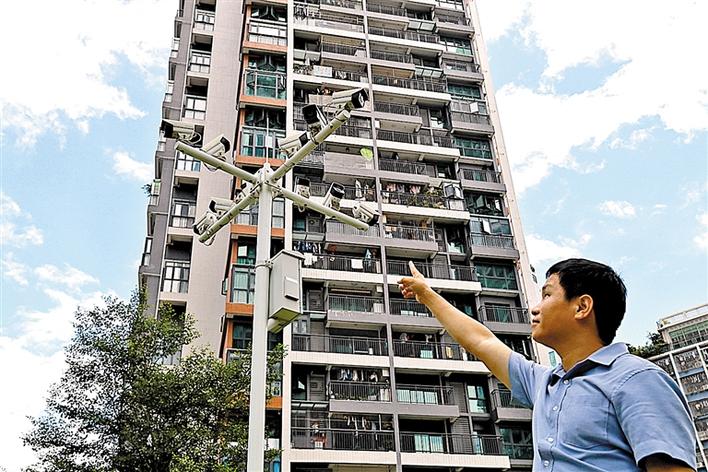 吴主任称,物业如今采取人防和技防两种方式开展高空抛物安全防范工作,除了定期组织义工和安保人员上门对业主进行安全宣传教育外,还在小区内安装了朝天监控。
