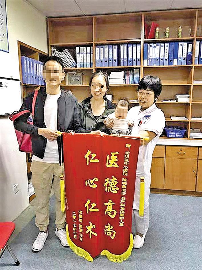 “陈主任!”8月2日,在龙华区中心医院,产科主任陈晓燕刚从成功抢救胎盘植入大出血产妇的手术室出来,就被一个略兴奋的声音叫住停住了脚步,回头一看,原来是两张熟悉的面孔,2017年那对不幸遇上又战胜了“产科死神”的产妇夫妻——宋福创及周燕,他们手上还捧着一束鲜花!这对夫妻已连续三年来到医院,一家三口当面向陈晓燕道一声“谢谢”。