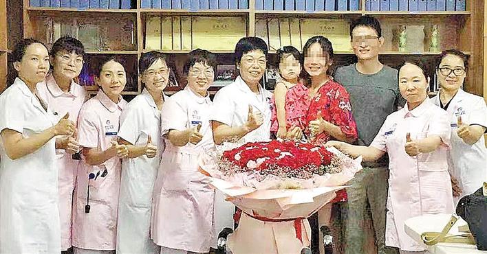 今年8月2日,这对经历过“产科死神”的产妇夫妻再次出现在医院产科,小宋手上还捧着一束鲜花,一共199朵玫瑰。一见到陈晓燕,小周紧紧握住她的手,话没来得及说出口,泪花就模糊了双眼,她说:“感谢你从‘鬼门关’把我救了回来,成就了我们一家三口的幸福,是我们生命中的贵人,我们每年都要来看您!”