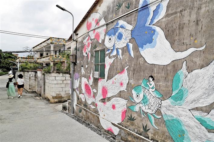 鳌湖艺术村处处都能看到艺术家精心创作的壁画。