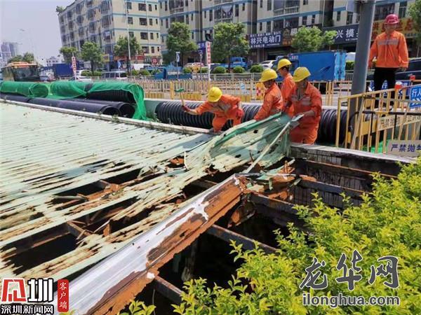 拆除福前路边乐厨厂门口覆盖河道铁皮,面积200平米。