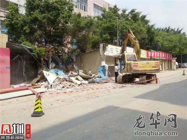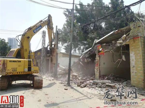 拆除观澜大道改扩建顺兴厂对面一排临街商铺,建筑面积900平米。
