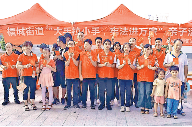8月15日,福城街道在合正观澜汇广场开展“大手拉小手·宪法进万家”主题宣传活动。