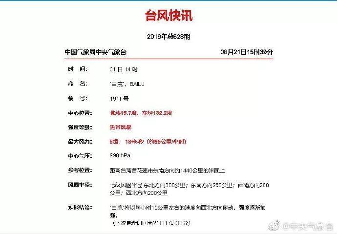 在台风“利奇马”和“罗莎”消失后,上周开始西北太平洋准备憋大招了。8月21日下午14时,菲律宾以东的热带扰动,加强为今年第11号台风“白鹿”(热带风暴级)。