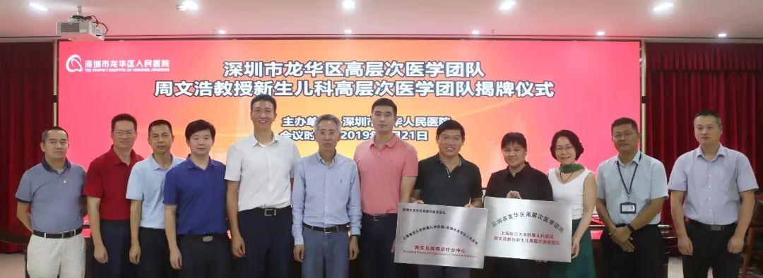 8月21日,深圳市龙华区引进的高层次医学团队——上海复旦大学附属儿科医院周文浩教授新生儿科团队揭牌仪式在龙华区人民医院举行。