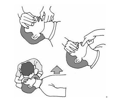 (4)第二抢救者到现场后,应首先检查颈动脉搏动,然后再开始作人工呼吸。如心脏按压有效,则应触及到搏动,如不能触及,应观察心脏按压者的技术操作是否正确,必要时应增加按压深度及重新定位。