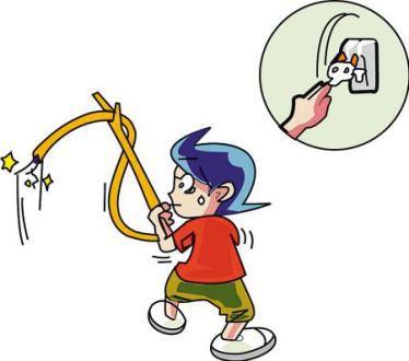 2.尽力摆脱电源,在跳起时触电者可用一只手迅速抓住电源的绝缘处,将电线从电源插座拉出,解脱触电状态。