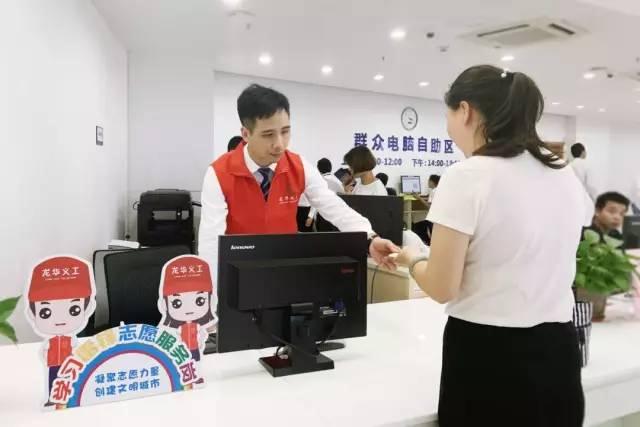区大厅设置志愿者服务站,街道、社区大厅也均有志愿者为群众提供引导办事、业务咨询、免费帮忙复印材料、维护秩序、助残敬老等志愿服务,同时提供办事指南,配备医药箱。