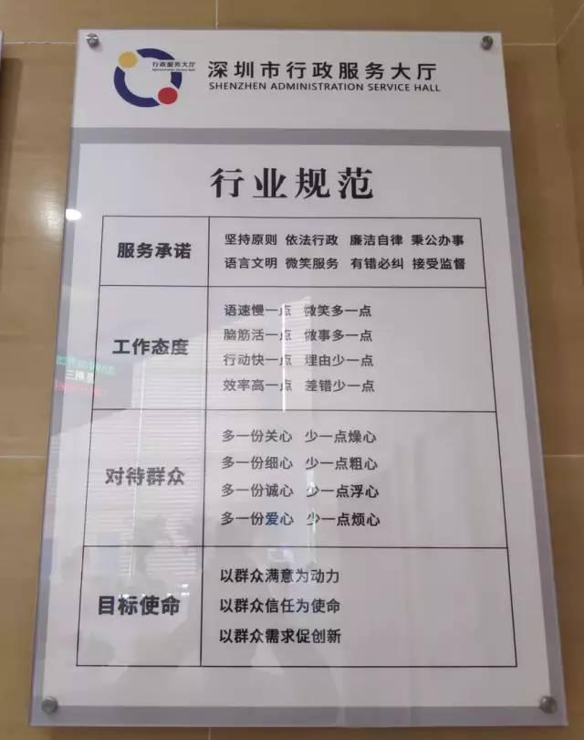 在区、街道、社区三级政务大厅设置“深圳市行政服务大厅行业规范”,一言一行“您监督我规范”。