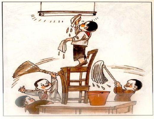 做教室卫生时,请注意不要将水洒在排插、电线上,也请勿使用湿抹布擦拭电器,夏季高温暴雨天气下,室内潮湿,人易出汗,汗手触电的可能性和严重性更大,注意不要赤手触碰电气设施。