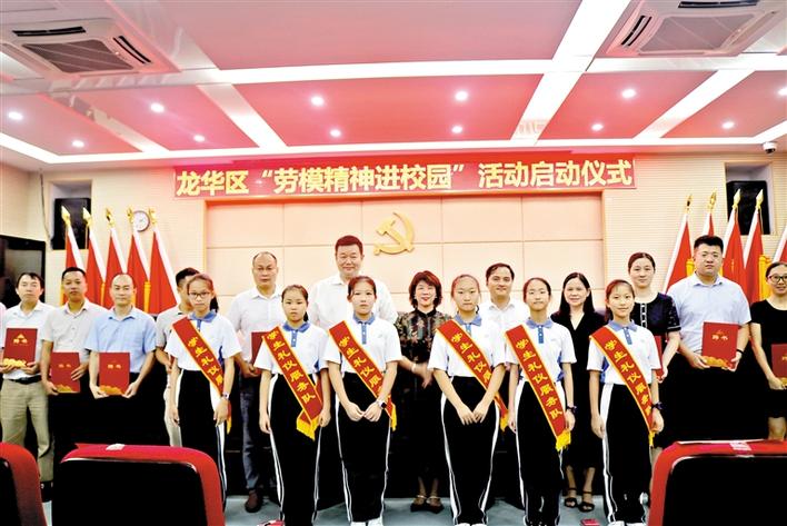 龙华新闻讯(记者 陈欣 通讯员 庄思瑜 文/图)为大力弘扬劳模精神、劳动精神和工匠精神,充分发挥各行业劳模和高技能人才的示范带动作用,让劳动最光荣、劳动最崇高、劳动最伟大、劳动最美丽的观念在校园蔚然成风,昨日下午,龙华区总工会联合区教育工联会主办的“劳模精神进校园”活动启动仪式暨劳模讲师团证书颁发仪式在观澜二中举行。