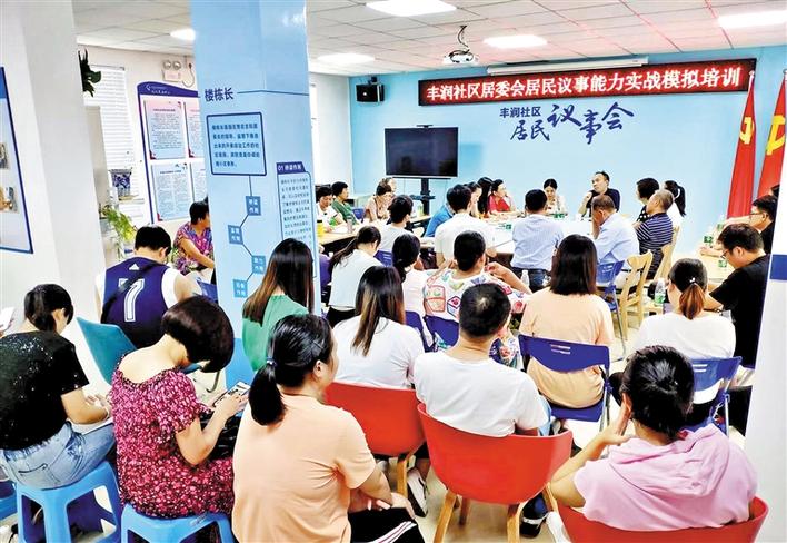 民治街道丰润社区居委会居民议事能力实战模拟培训现场。