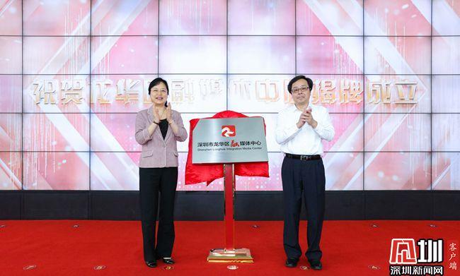 市委常委、宣传部部长李小甘,龙华区委书记杜玲共同为龙华区融媒体中心揭牌。