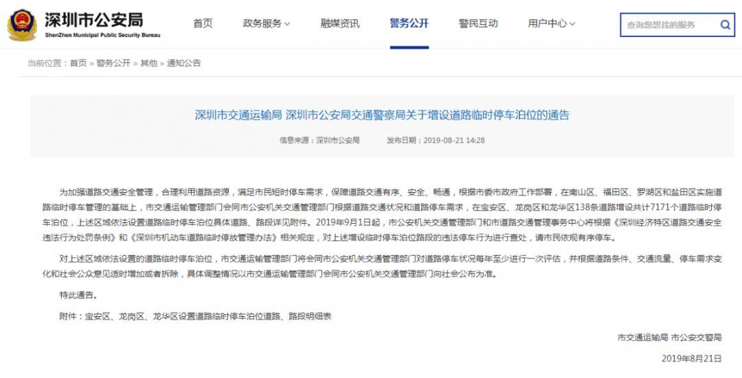 市交通运输局、市交警局近日发布通告深圳将在龙华、宝安和龙岗138条道路增设共计7171个道路临时停车泊位这些道路就可以临时停车了