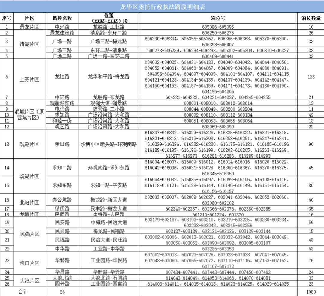 咱们龙华就新增了1080个“宜停车”泊位片区路段都给你列好了看不清的亲记得点击图片查看大图呀~!