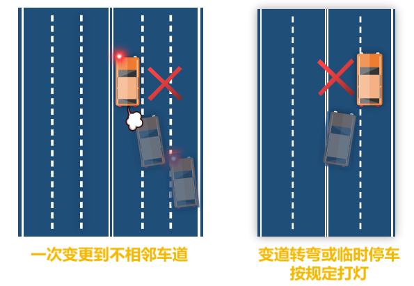 本次修订对不按规定变道处罚500元。包括一次变更到不相邻车道的、变道转弯或者临时停车不按规定打灯的,进行处罚。