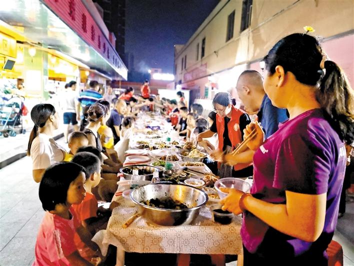 社区精心为摊主和居民准备一场交心之旅,厨艺比拼、百家宴,让更多居民了解摊主的故事,也让居民和摊主们建立“熟人”社区网络。