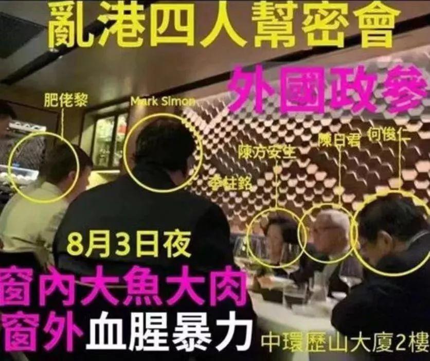 2019年8月3日晚,香港油尖旺发生骚乱之际,陈日君被市民目睹与“乱港派”头目黎智英、李柱铭、陈方安生等人“大搞庆功宴”,并在黎智英的助手马克·西蒙(Mark Simon)的安排下,密会一名神秘外国男子。