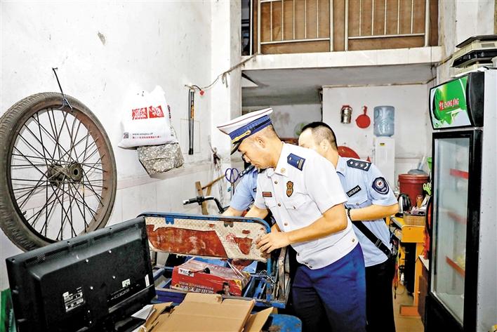 工作人员发现水斗新围村一住户内存放废弃电动三轮车,对车辆电池进行扣缴。