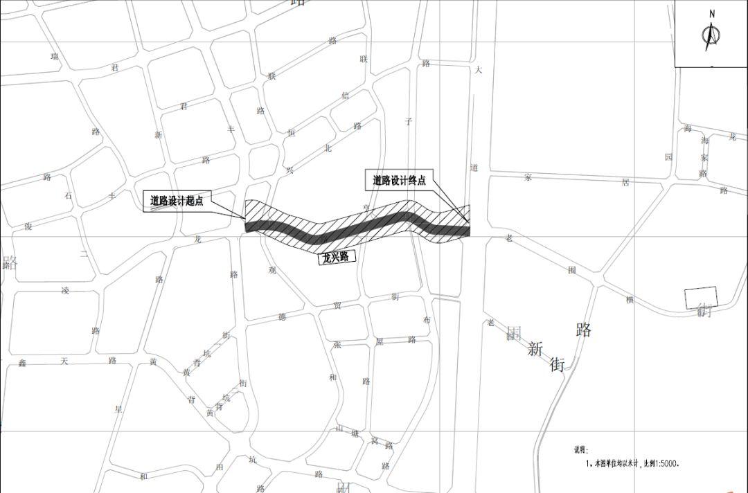 项目起点接现状五和大道,终点接环观南路。全长720米,双向2车道,道路红线宽度为14米。