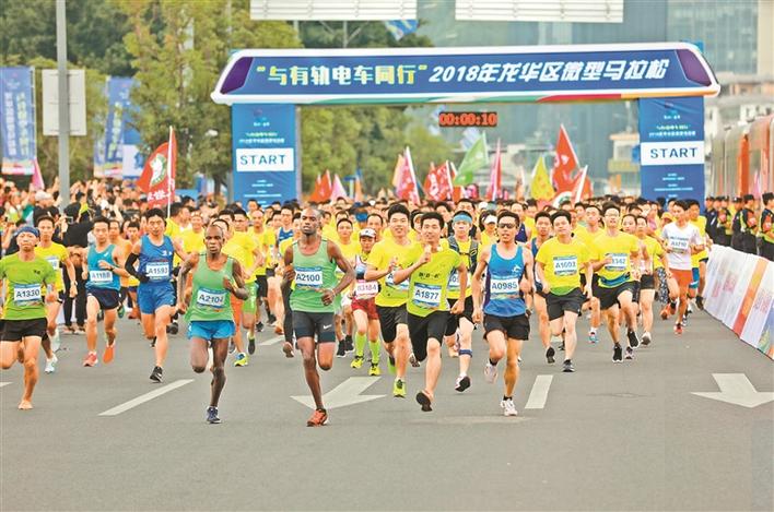 龙华以赛事推广城区宜居宜业环境。图为2018年龙华区“与有轨电车同行”微型马拉松。