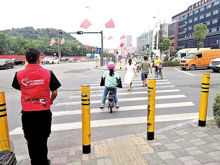 大富社区组织志愿者开展文明出行引导活动。