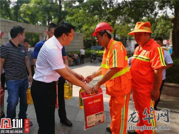 此外,当天上午,大浪街道在劳动者广场组织开展“环卫工人节”慰问活动,为辖区60名环卫工人代表发放米、油等慰问品。大浪街道相关负责人对环卫工人致以节日的问候,对他们不畏烈日、不惧风雨,始终坚守在一线的劳动表示诚挚的敬意及感谢。同时鼓励和发动广大环卫工人要积极参与创文行动,认真细心做好环卫工作,为提升大浪的市容环境品质贡献力量。
