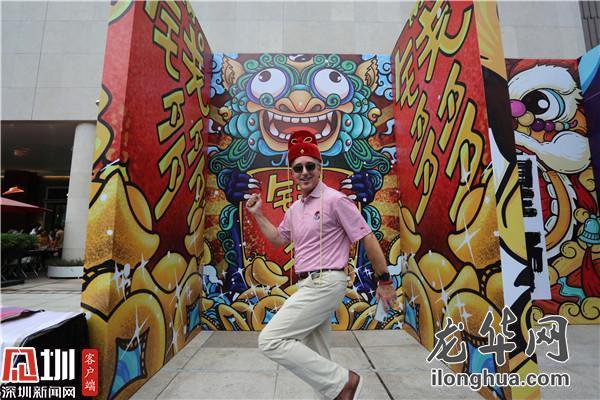 现场还有国潮文化墙、国潮留影墙、国潮打卡点、国潮巡游展等潮玩项目。国潮文化墙等布景均经过精心设计,充分使用了醒狮、春联、祥云、京剧等中国元素,色彩喜气,画面生动有张力,使传统与前卫达到了很好的平衡。当晚,有不少市民身着汉服、旗袍等民族服饰前来参加夜游会,并在各个打卡点凹造型拍照。