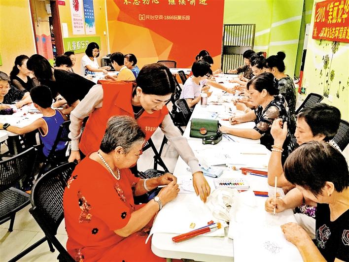 社区居民在环保袋上进行手工创作。