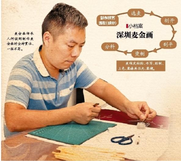 麦秆,在人们的印象中,常用于返田、堆料以及烧火。但是用其作为原材料做成画,这需要凝结民间手工艺者的智慧和心血。在龙华区第二批非遗代表性区级传承人名单里,何俊刚的名字赫然在列。他带着创新改良后的深圳麦金画制作技艺,正式踏上了非遗之路。