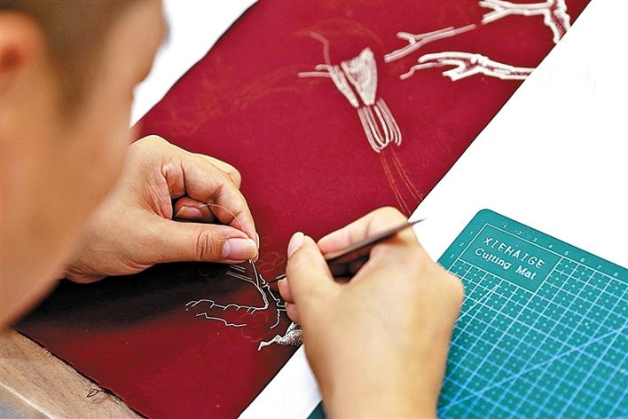 麦金画传承人何俊刚制作麦金画时全神贯注、一丝不苟。