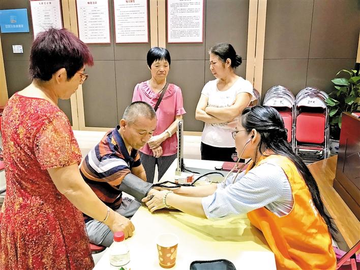 樟坑社区党委结合主题教育打造“我值班,我服务”系列活动,利用社区党群服务中心周末值班的机会,开展专业性、个性化便民服务,真正把党员擅长的专业知识转化为为辖区居民提供服务的生动实践。9月8日是钟惠莲首次在党群服务中心轮岗值班的日子。她不仅是辖区党员,还是一名医生。早上8:30,钟惠莲就带着医用包来到社区党群服务中心,免费为辖区居民测量血压、检测血糖浓度、解答生活中常见慢性病预防及如何养成良好的饮食、运动习惯等问题。社区群众反馈,这样的服务切合居民所需,很“接地气”。