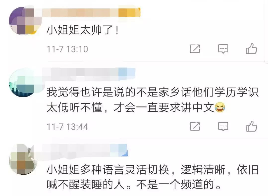 视频曝光后,许多网友也为她的勇敢行为点赞:“太刚了!”“有颜值又有口才!”