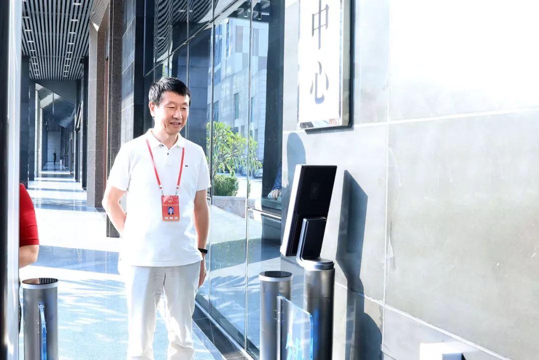 进门的安检区,新设了“律师免检绿色通道”。通过和司法系统网络通路,及时更新全深圳市律师信息,依托人脸识别技术,可自动识别律师身份。律师刷脸自动开门,无需安检,引得代表中的律师们纷纷刷脸尝试,并一一通关成功。