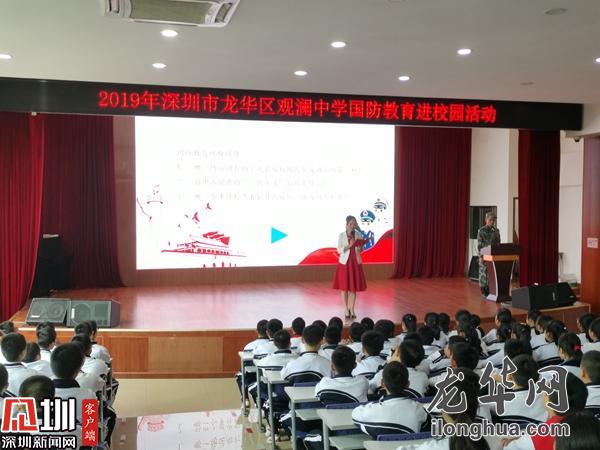 见圳客户端·深圳新闻网11月19日讯(记者 郑瑞欣)为加强国防教育,增强学校师生国防观念,11月19日下午,观澜中学开展了国防教育系列活动,龙华区委常委、人民武装部部长黄冰峰率队到场观摩。活动伊始,学校师生们集中观看了国防教育视频,师生们纷纷表示,历史不容忘却,我们要时刻牢记历史,居安思危,砥砺前行,为实现中华民族的伟大复兴贡献自己的力量。