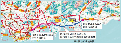 沈阳至海口国家高速公路汕尾陆丰至深圳龙岗段是沈阳至海口国家高速公路 (G15)的重要组成部分,起点位于陆丰市潭西镇,途经汕尾市城区、海丰县、惠州市惠东县、惠阳区、深圳市坪山新区,终于深圳市龙岗区。全长146.55公里,1996年建成通车。经过近12年的营运使用,建设单位曾于2008~2009年对深汕高速公路西段全线路面进行大修。深汕西高速现为双向四车道,路基宽度为24.5米,设计行车速度为100公里/小时。