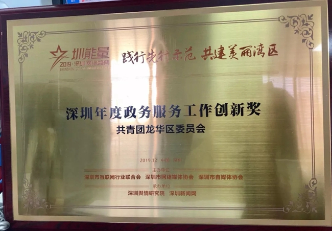 在本次活动中,共青团龙华区委员会荣获“2019年度深圳政务服务工作创新奖”,该单位主管的“龙华青年”微信公众号也获得了“2019年度深圳优秀政务新媒体”称号。 据了解,2019年,龙华团区委根据粤港澳大湾区建设和先行示范区建设要求,围绕区委区政府粤港澳青年工作部署,坚持以活动为纽带,学理论、强交流、搭平台、建体系,增进三地青年互融互通,引领三地青年主动融入先行示范区建设。