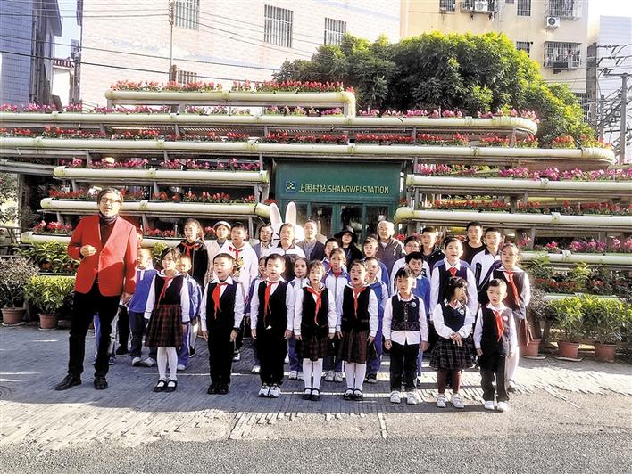 “我爱你中国,我要把美好的青春献给你,我的母亲,我的祖国……”快闪拍摄现场,伴随着手风琴伴奏响起,歌唱家吴立坤带领艺术家和艺术中心的孩子们从各个巷子走出,唱着《我爱你中国》,在艺术村内最美的立体花海前缓缓聚拢。一时间,风琴声、童声、美声、合唱声,声声入耳,“每一句都是——我爱你中国!”大家幸福的脸庞在镜头中闪现,悠扬的歌声在艺术村上空久久回荡。