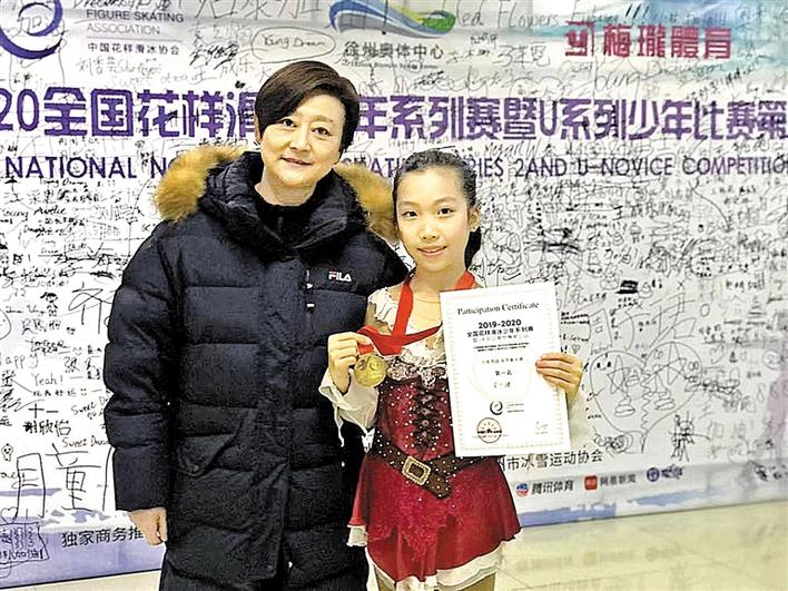 获奖后周子珺与教练赵颖合影。(家长供图)