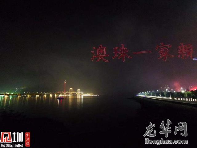 见圳客户端、深圳新闻网12月23日讯(记者 胡安坤)在澳门回归祖国20周年之际,为表达珠澳两地人缘相近,地缘相亲,携手同庆的美好愿望,珠海与澳门在回归纪念日的当晚,携手举办跨境烟花汇演,让两岸花绽放,相映成辉。来自龙华的大漠大无人机编队亮相当晚的晚会,600架无人机点亮夜空,为现场观众带来了一场视觉盛宴。